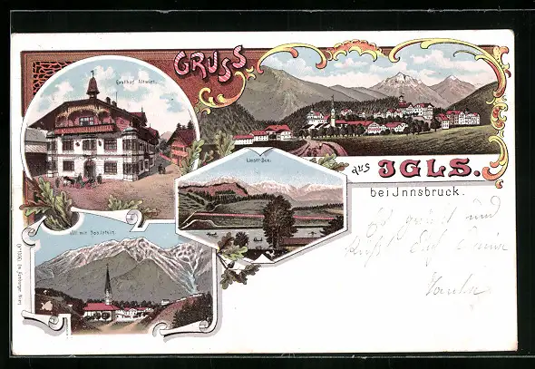 Lithographie Igls bei Innsbruck, Gasthof Altwirt, Lanser-See
