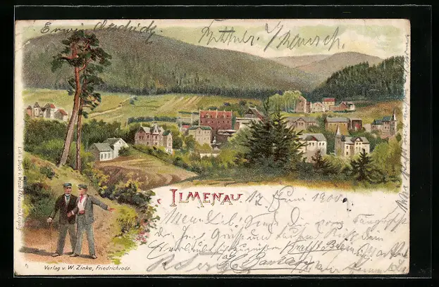 Lithographie Ilmenau, Wander mit Blick auf die Stadt