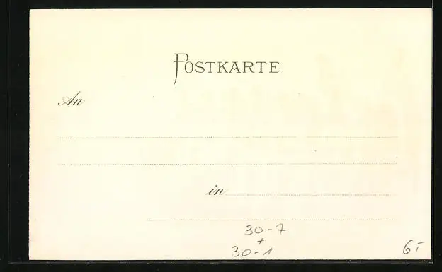 Personenbezogene Daten auf der Rückseite der Karte wurden durch blauen Textmarker unkenntlich gemacht. Die blauen Stellen sind auf die Vorderseite durchgeweicht und wirken sich negativ auf das Postkartenfoto aus