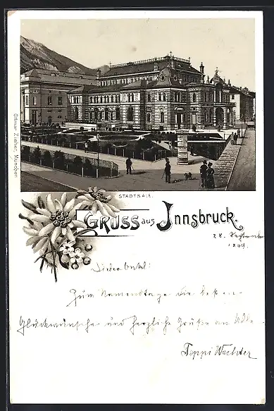 Lithographie Innsbruck, Blick auf die Stadtsäle