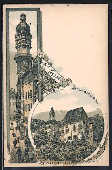 Lithographie Innsbruck, Das Schloss Weiherburg, Ortspartie