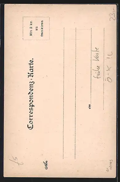 Personenbezogene Daten auf der Rückseite der Karte wurden durch blauen Textmarker unkenntlich gemacht. Die blauen Stellen sind auf die Vorderseite durchgeweicht und wirken sich negativ auf das Postkartenfoto aus