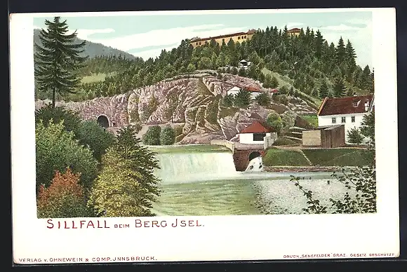 Lithographie Innsbruck, Ortspartie am Sillfall