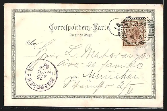 Personenbezogene Daten auf der Rückseite der Karte wurden durch blauen Textmarker unkenntlich gemacht. Die blauen Stellen sind auf die Vorderseite durchgeweicht und wirken sich negativ auf das Postkartenfoto aus