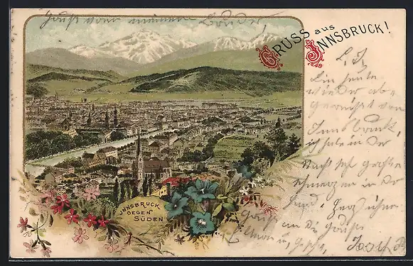 Lithographie Innsbruck, Teilansicht gegen Süden