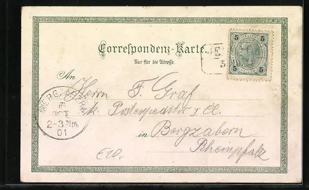 Personenbezogene Daten auf der Rückseite der Karte wurden durch blauen Textmarker unkenntlich gemacht. Die blauen Stellen sind auf die Vorderseite durchgeweicht und wirken sich negativ auf das Postkartenfoto aus