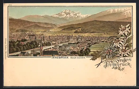 Lithographie Innsbruck, Totalansicht nach Süden