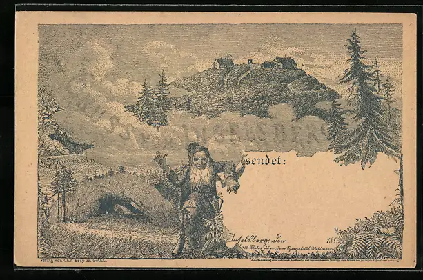 Lithographie Inselberg, Totalansicht mit Thorstein
