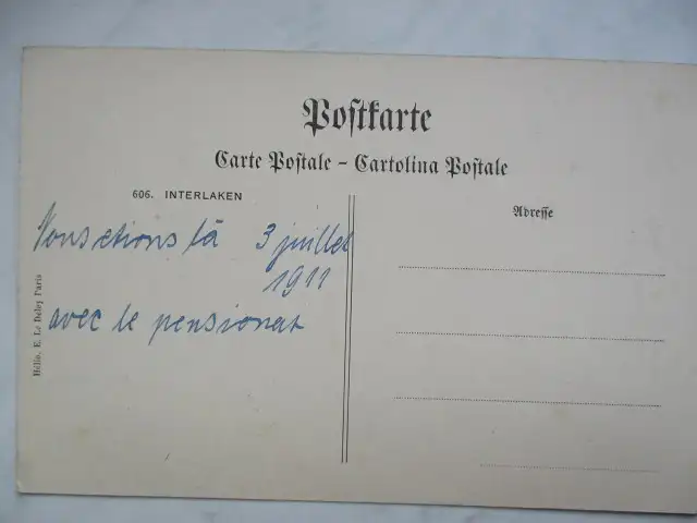 Motiv: Berg, Schnee, Ortschaft im Tal. Verlagsangaben: Paris, Hélio, dat. 1911, 606.