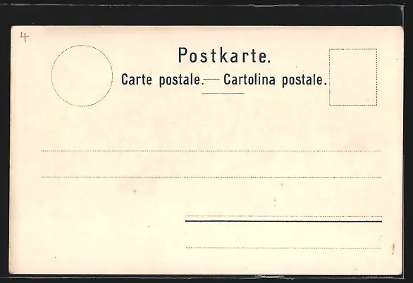 Personenbezogene Daten auf der Rückseite der Karte wurden durch blauen Textmarker unkenntlich gemacht. Die blauen Stellen sind auf die Vorderseite durchgeweicht und wirken sich negativ auf das Postkartenfoto aus
