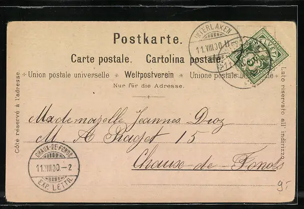 gelaufen 1900, Eckknick li. oben, guter Zustand