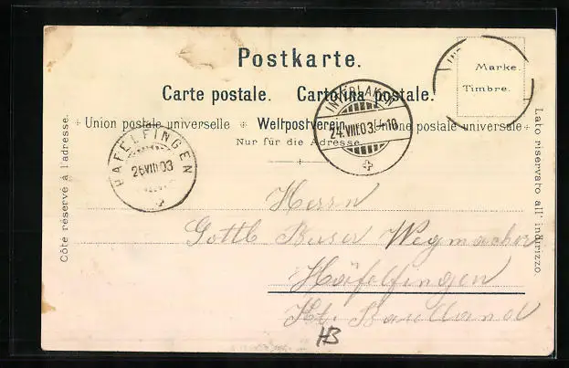 gelaufen 1903, Briefmarke entfernt, guter Zustand
