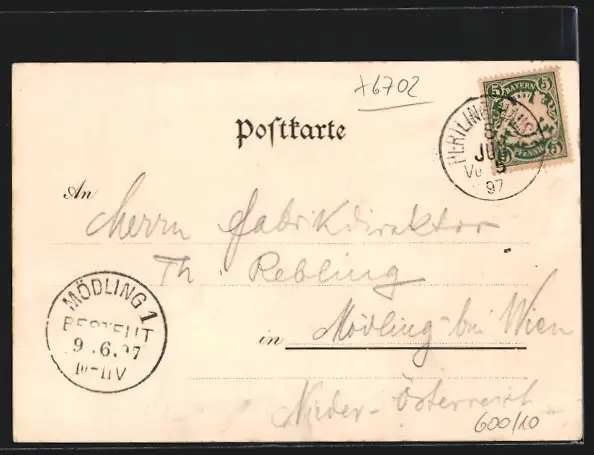 gelaufen 1897, Eckknick oben rechts, guter Zustand
