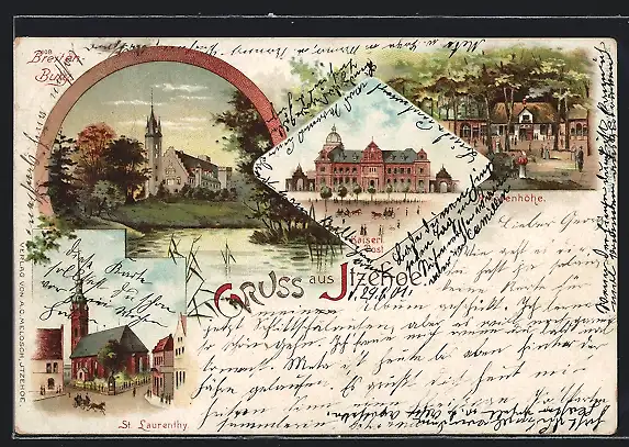 Lithographie Itzehoe, Breitenburg mit Kaiserl. Post
