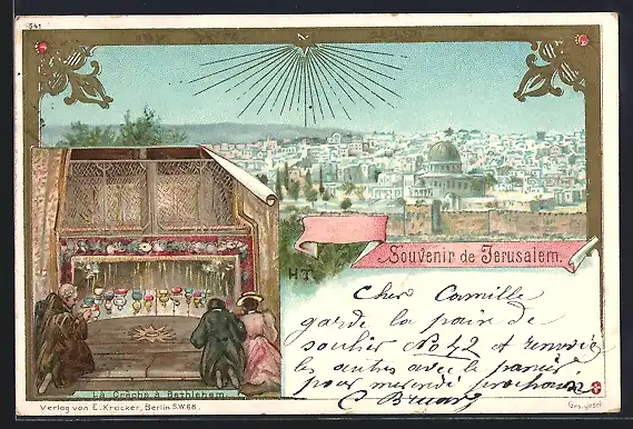 Lithographie Jerusalem, Totalansicht, La Créche á Berhlehem