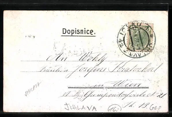 Lithographie Jihlava, Gebäudeansicht, Denkmal, Frau in Tracht