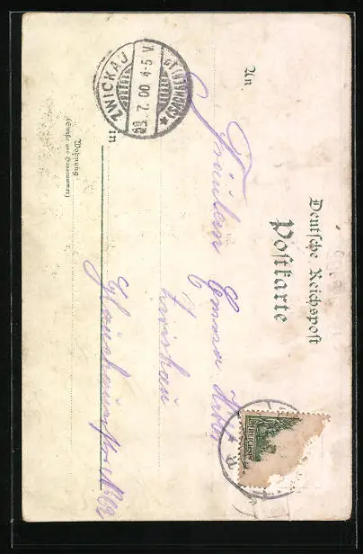 gelaufen 1900, Briefmarke entfernt, guter Zustand
