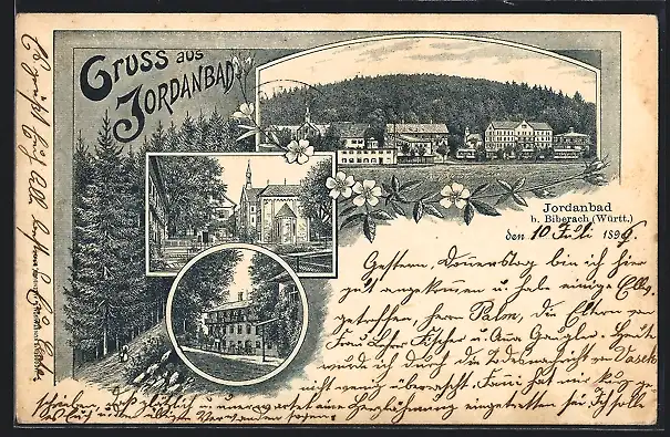 Personenbezogene Daten auf der Rückseite der Karte wurden durch blauen Textmarker unkenntlich gemacht. Die blauen Stellen sind auf die Vorderseite durchgeweicht und wirken sich negativ auf das Postkartenfoto aus