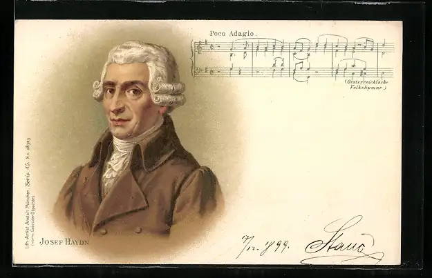 Lithographie Josef Haydn, Portrait des Komponisten und Noten