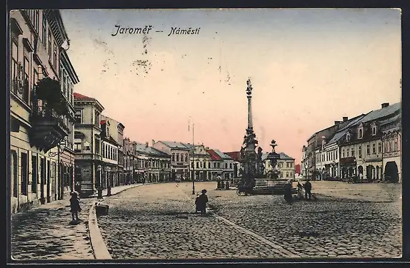 Lithographie Josefstadt / Josefov / Jaromer, Namesti, Dreifaltigkeitssäule