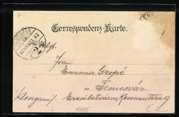 gelaufen, Briefmarke entfernt, rückseitig Oberflächenschaden, guter Zustand