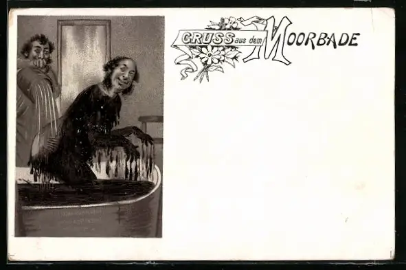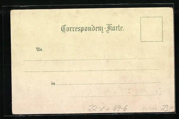 Personenbezogene Daten auf der Rückseite der Karte wurden durch blauen Textmarker unkenntlich gemacht. Die blauen Stellen sind auf die Vorderseite durchgeweicht und wirken sich negativ auf das Postkartenfoto aus