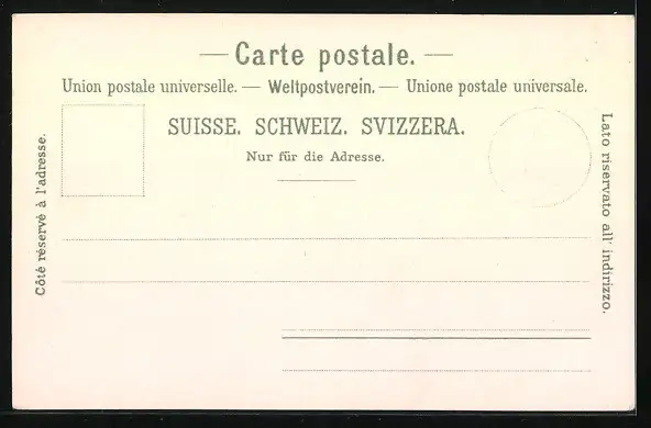 Personenbezogene Daten auf der Rückseite der Karte wurden durch blauen Textmarker unkenntlich gemacht. Die blauen Stellen sind auf die Vorderseite durchgeweicht und wirken sich negativ auf das Postkartenfoto aus