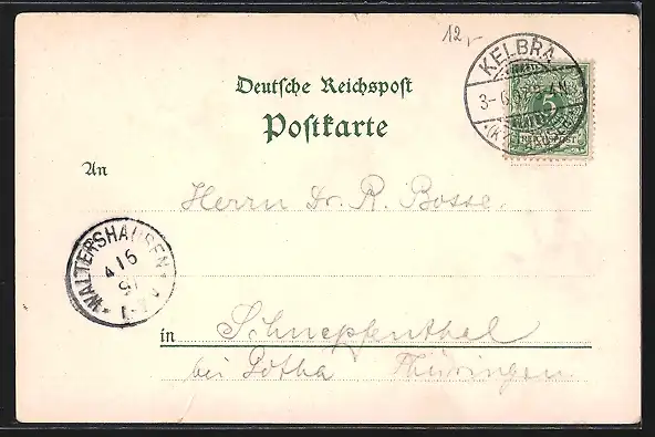 gelaufen 1897, Eckknicke oben, Einriss unten re., minimaler Einriss oben mittig