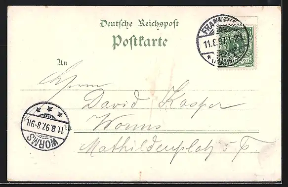 gelaufen 1897, min. Einriss oben, guter Zustand