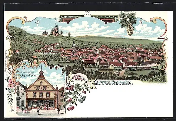 Lithographie Kappelrodeck, Handlung v. August Rolk, Panoramablick
