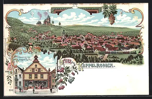 Lithographie Kappelrodeck, Totalansicht aus der Vogelschau, Handlung Roth