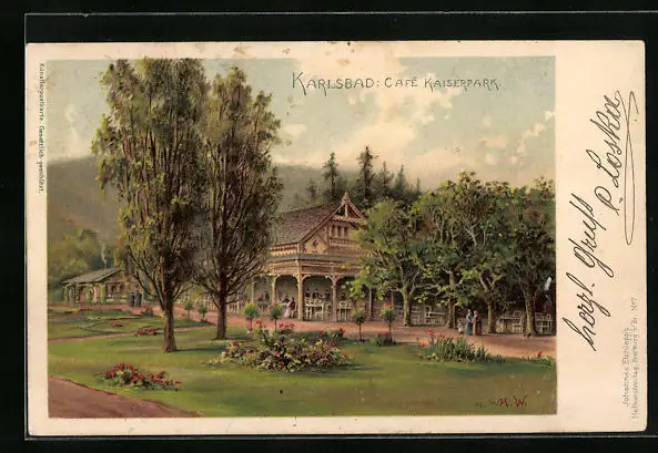 Lithographie Karlsbad, Cafe Kaiserpark