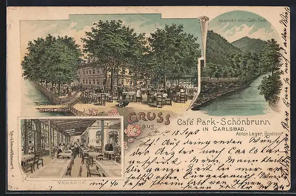 Lithographie Karlsbad, Cafe Park-Schönbrunn, Veranda