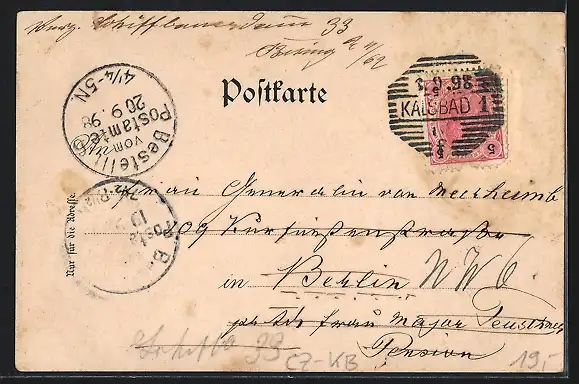 gelaufen 1898, kleiner Einriss li. oben, guter Zustand