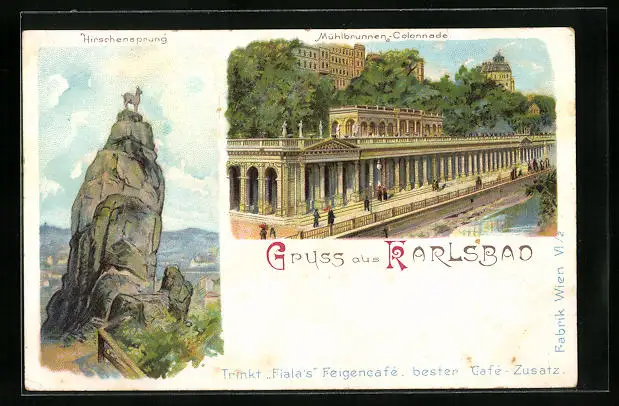 Lithographie Karlsbad, Hirschensprung, Mühlbrunnen-Colonnade