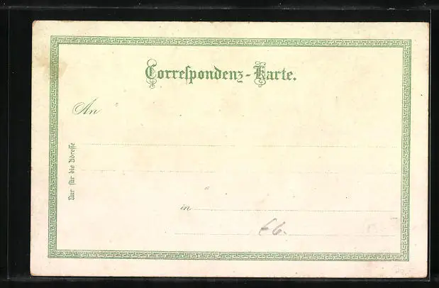 Personenbezogene Daten auf der Rückseite der Karte wurden durch blauen Textmarker unkenntlich gemacht. Die blauen Stellen sind auf die Vorderseite durchgeweicht und wirken sich negativ auf das Postkartenfoto aus