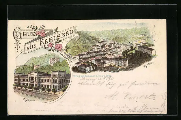 Lithographie Karlsbad, Kurhaus, Teilansicht