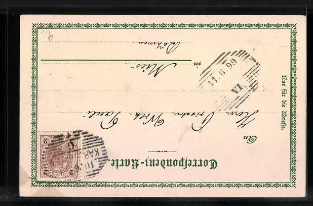 gelaufen 1899, Geklebter Eckknick unten re., guter Zustand