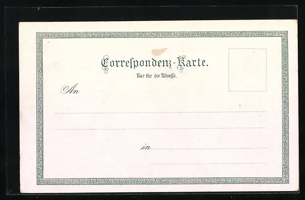 Personenbezogene Daten auf der Rückseite der Karte wurden durch blauen Textmarker unkenntlich gemacht. Die blauen Stellen sind auf die Vorderseite durchgeweicht und wirken sich negativ auf das Postkartenfoto aus