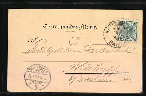 gelaufen 1900, Eckknick li. unten, Stempelspur, guter Zustand