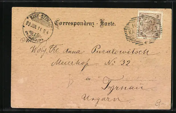 gelaufen 1899, Eckknicke re. unten u. li., guter Zustand