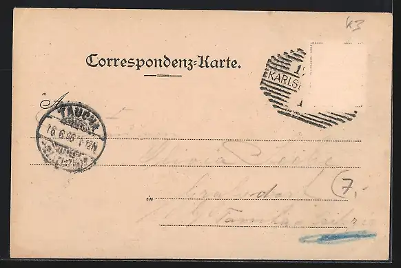 gelaufen 1896, Briefmarke entfernt, Eckknicke oben und unten li., guter Zustand