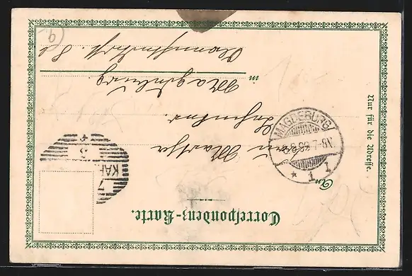 gelaufen 1899, Briefmarke entfernt, rückseitig Klebe- und Papierrest, guter Zustand