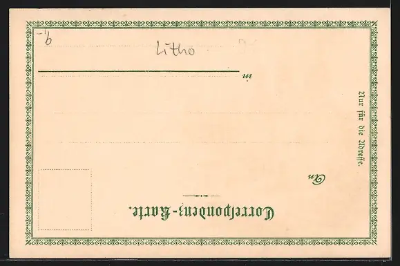Personenbezogene Daten auf der Rückseite der Karte wurden durch blauen Textmarker unkenntlich gemacht. Die blauen Stellen sind auf die Vorderseite durchgeweicht und wirken sich negativ auf das Postkartenfoto aus