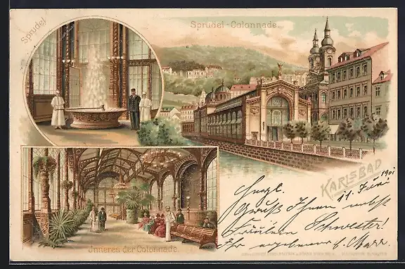 Lithographie Karlsbad, Sprudel-Colonnade, Inneres, Sprudel