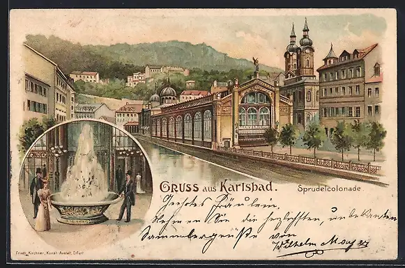Lithographie Karlsbad, Sprudel in der Sprudelcolonade