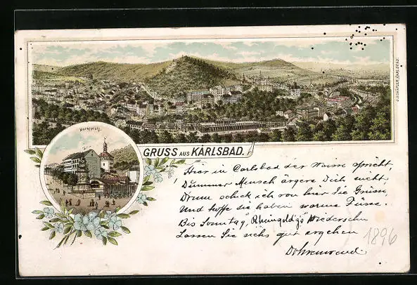 Lithographie Karlsbad, Teilansicht, Marktplatz