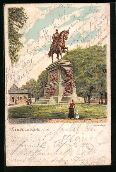 Lithographie Karlsruhe, Besucher am Kaiserdenkmal
