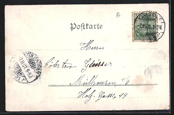 gelaufen 1901, Bugspuren li. u. re. unten, guter Zustand