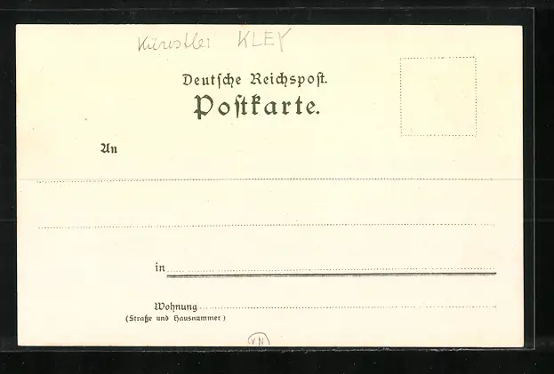 Personenbezogene Daten auf der Rückseite der Karte wurden durch blauen Textmarker unkenntlich gemacht. Die blauen Stellen sind auf die Vorderseite durchgeweicht und wirken sich negativ auf das Postkartenfoto aus